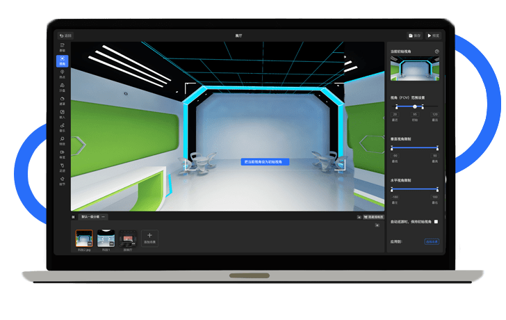 支持全景视频编辑,设置自定义LOGO、设置作品访问密码、设置视角等